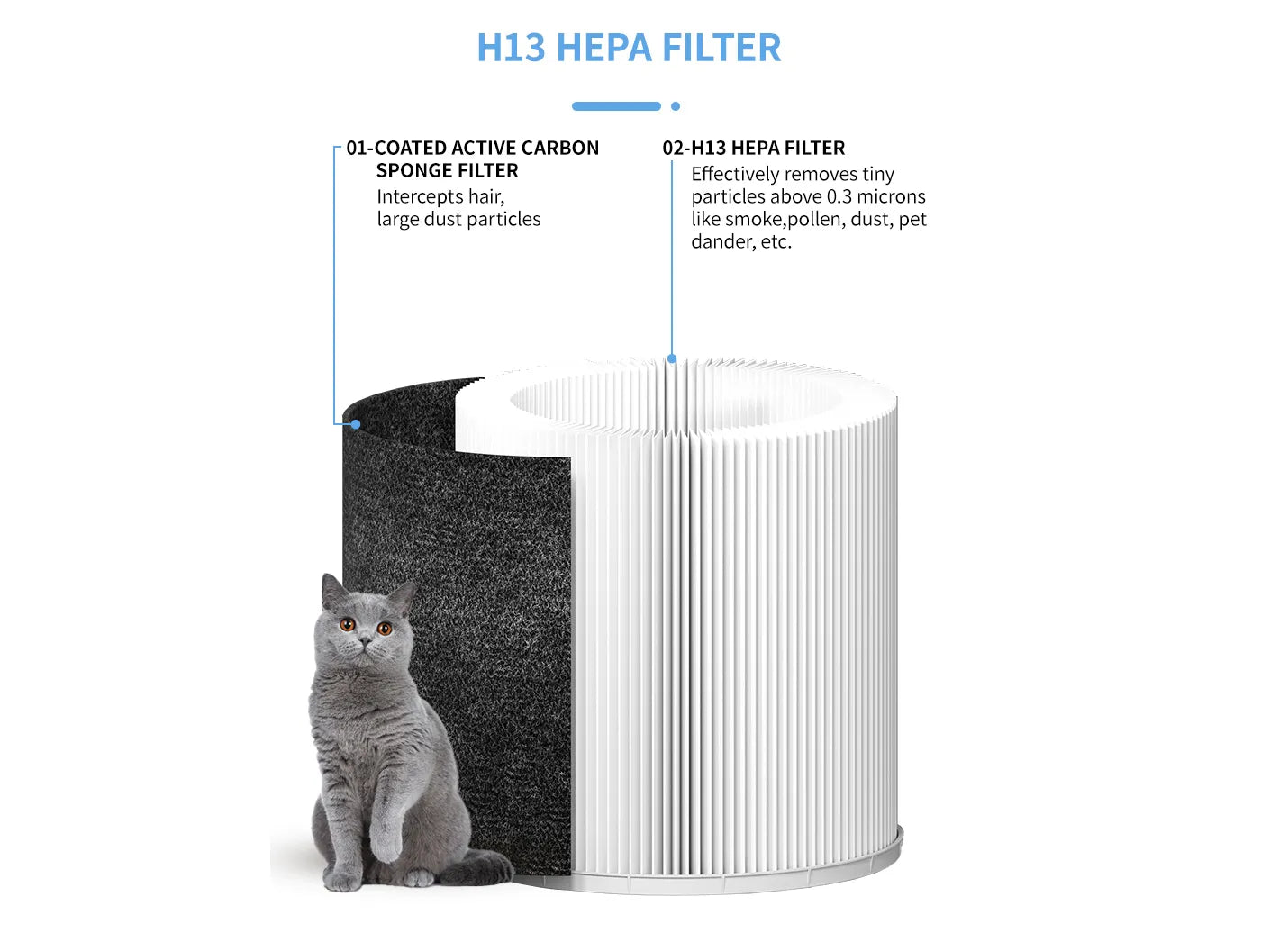 Pentru a reuși să purifice spațiile de până la 35 mp într-un timp cât mai scurt, ECOZEN CalmHome 9920 este dotat cu filtru H13 HEPA și filtru Carbon Activ.
