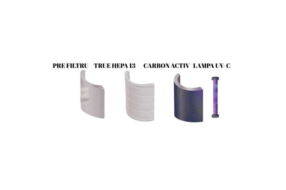 - Filtrare: Pre-filtru, HEPA, cărbune activ, UV-C, filtru antibacterian
