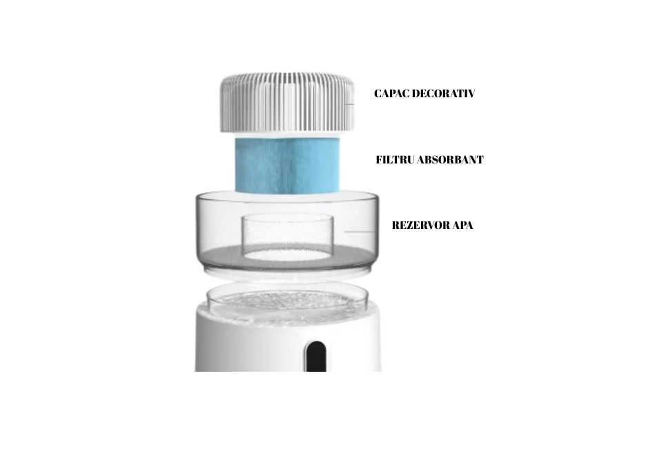 | Funcții | Antibacterian, Temporizator, Child Lock, Purificare aer, Buton On/Off, Filtrare aer, Funcționare silențioasă, Indicator schimbare filtru, Filtru HEPA, Umidificator integrat, Filtru Carbon Activ, Pet Friendly, Evaporare fără ceață |
